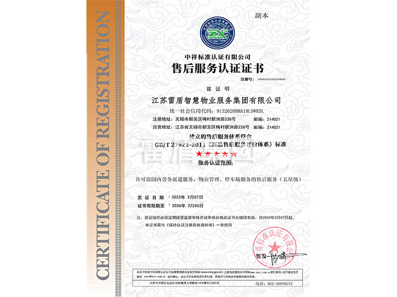 多年來公司榮獲多項資質榮譽,通過質量管理體系認證保安服務,獲得 “ 先進文明優秀單位 ”、“ 江蘇優秀保潔服務企業 ” 等,過硬實力為您的安全保駕護航